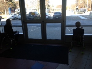 This picture looks funny to me – like the two kids staring out the window on a rainy day at the start of the book The Cat in the Hat. What is actually happening is two math students are collecting data about the types of vehicles that drive past our school in the morning. It’s amazing the involvement, concentration and analyzing that happens in this type of activity – despite being self proclaimed ‘math haters’. I laugh (on the inside of course so that it doesn’t show) when they ask if they can quickly finish their math work so that they can do more data collecting !