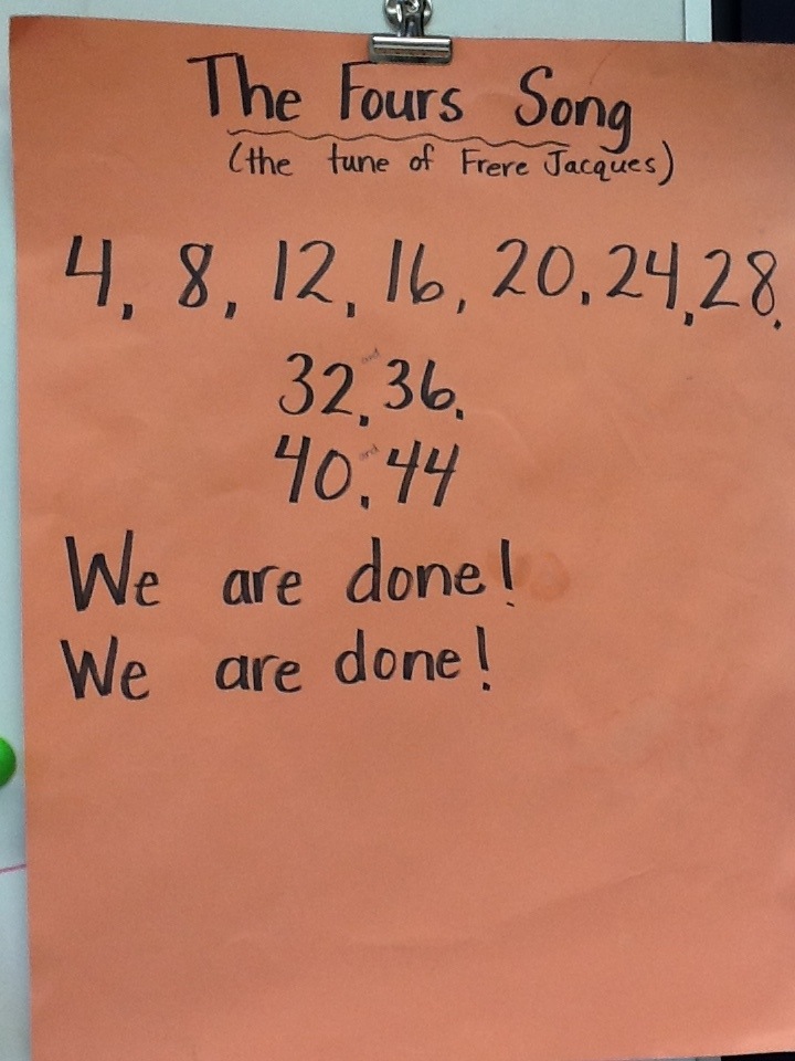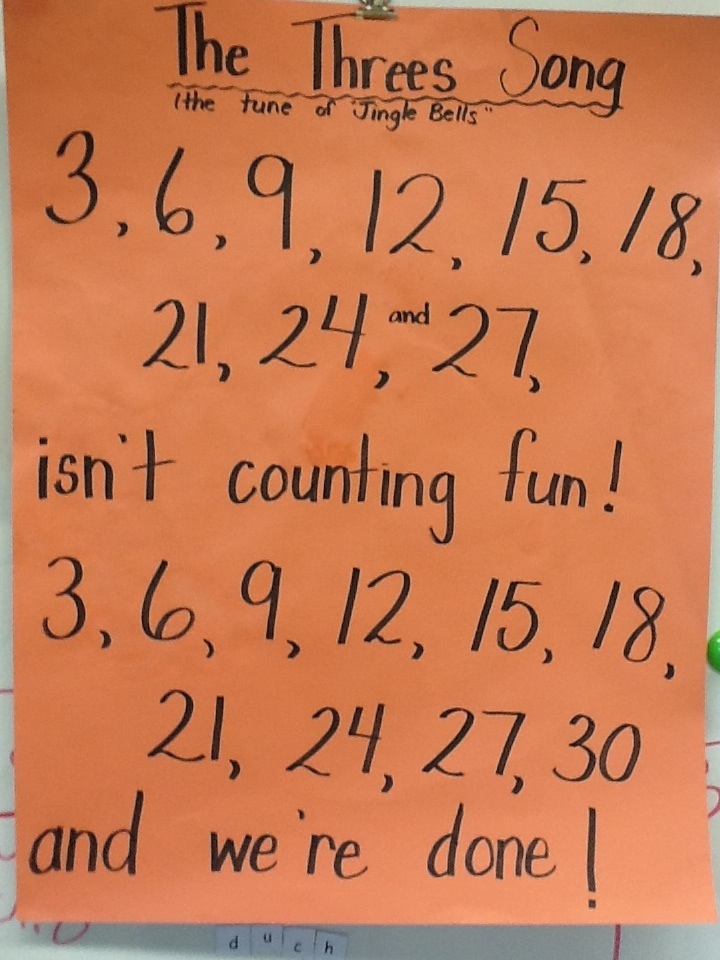 Thank you to a former student for teaching me these simple, but very helpful songs. (These really stick! They get stuck in my head!) What I like is that the first word in the song is the number you want to count by (rather than spending time trying to remember the words to the song).